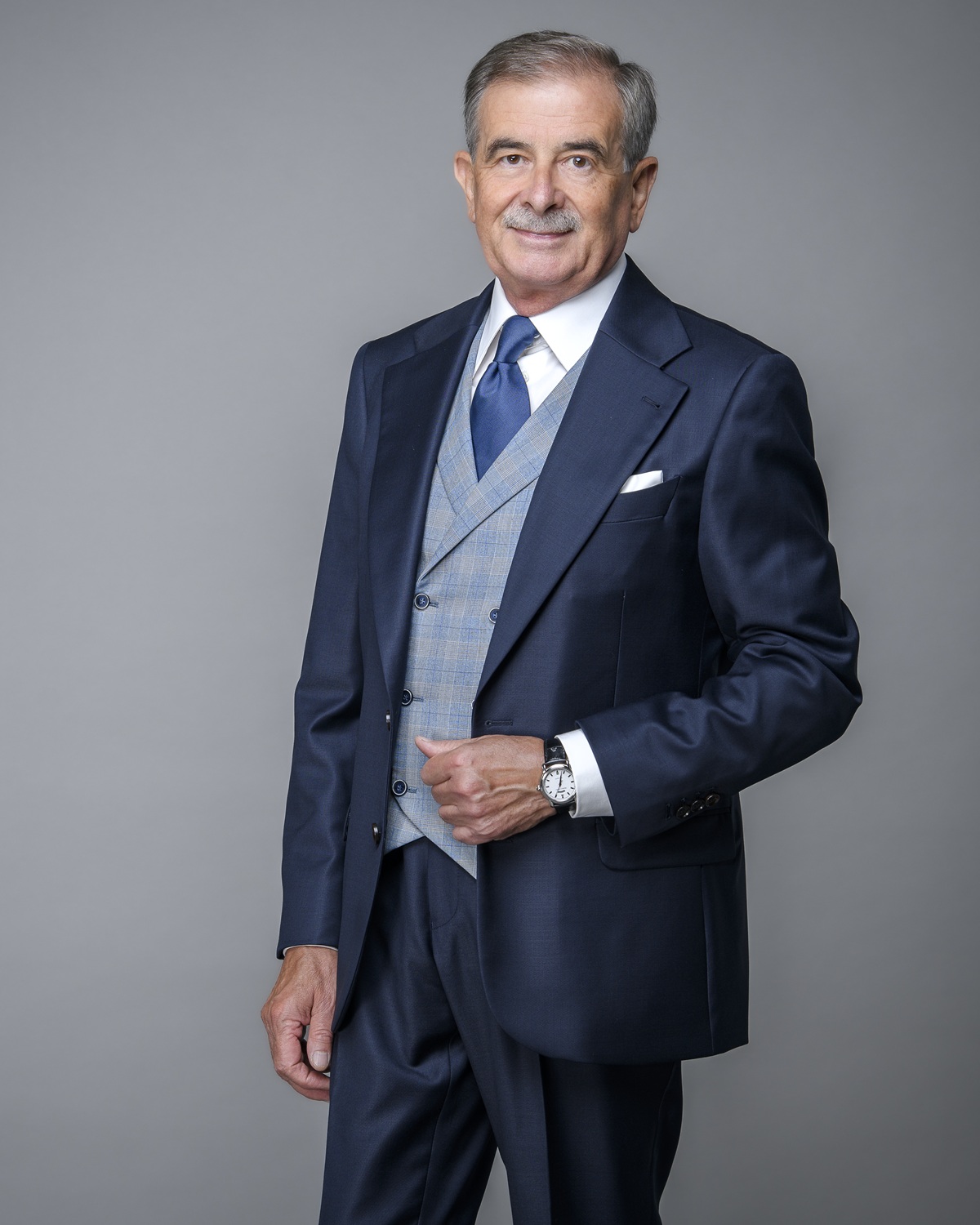 Przegląd kamizelek wypada zacząć od garniturów trzyczęściowych. Każdy zapewne wie, że trzyczęściowy garnitur wieczorowy jest bardziej formalny od garnituru dwuczęściowego. Ale nawet jeśli tego nie wie to z całą pewnością uzna, że garnitur z kamizelką prezentuje się bardziej elegancko i dostojnie. Tę prawidłowość można przenieść też na garnitury dzienne a nawet na letnie garnitury semi-każualowe. Ale w ich przypadku ten elegancki sznyt – choć zauważalny – nie jest już tak oczywisty jak ma to miejsce w przypadku garniturów wieczorowych. Poniżej kilka zdjęć pokazujących niektóre z moich trzyczęściowych garniturów, w tym jeden letni, z lnu bouclé.