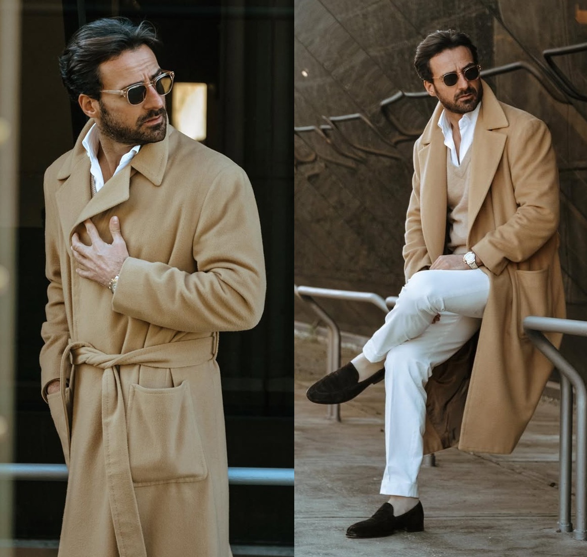 A wracając do typowych płaszczy polo: myślę, że w najbliższym czasie ich popularność jeszcze wzrośnie. Jednak wątpię aby ten wzrost popularności wśród dandysów i znanych Instagramerów przełożył się na dostępność takich płaszczy w ofertach dużych sieci. Dla przeciętnego mężczyzny niezbyt interesującego się kwestiami mody i stylu, już najnormalniejszy płaszcz jednorzędowy w kolorze szaroburym, jest wystraczająco niezwykły. A co dopiero płaszcz bez guzików, z zachodzącymi na siebie połami i to w kolorze camelowym! Żyjemy w epoce kurtek z syntetycznych materiałów i to się raczej nie zmieni. Więc na koniec przytoczę prognozę magazynu Men’s Wear z grudnia 1928 roku (w moim dość swobodnym tłumaczeniu): Moda na camelowe płaszcze wśród najlepiej ubranych mężczyzn świata jest bezdyskusyjna, ale wśród przeciętnych konsumentów dopiero się zaczyna. Promując ten styl na jesień i przyszłą wiosnę, handlowcy nie tylko zwiększą swoje zyski, ale także podniosą własny prestiż. I rzeczywiście rok 1929 był chyba rokiem szczytowej popularności camelowych płaszczy zarówno w Europie jak i za oceanem. Warto jednak wiedzieć, że większość z nich już wtedy była wyposażona w guziki.