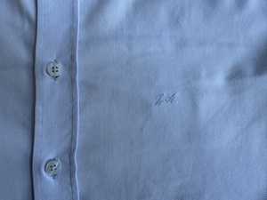 Pisałem o tym w różnych wpisach, w których używałem koszul szytych na miarę. Uważam, że zdecydowanie niewskazana jest tu wszelka ostentacja czyli np. inicjały wyhaftowane kontrastową nitką na mankietach i w ogóle użycie kontrastowej nitki. W moich koszulach inicjały są haftowane nitką w kolorze koszuli, w jej przedniej części, tuż nad linią gdzie powinien się znaleźć pasek spodni. Dobrym pomysłem jest też umieszczenie inicjałów na karczku pod kołnierzykiem.